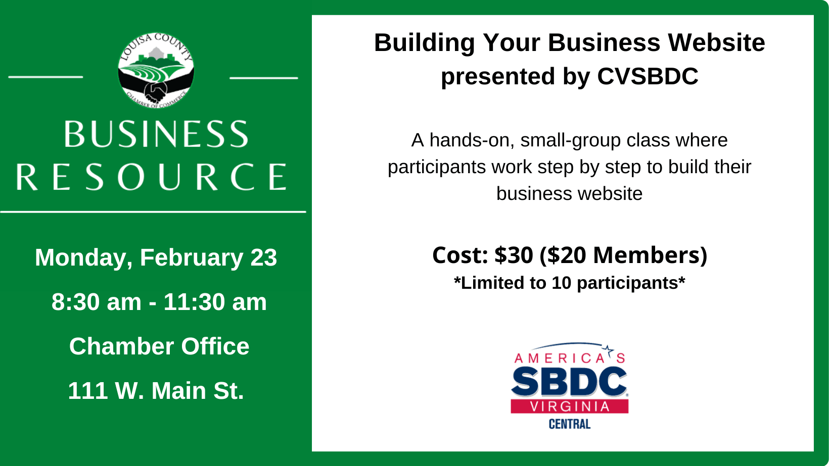 Date & Time: Monday, February 23rd, 8:30–11:30 amLocation: Louisa County Chamber of Commerce, 111 W. Main St., LouisaCost: $30 ($20 for Members)Refreshments will be provided.