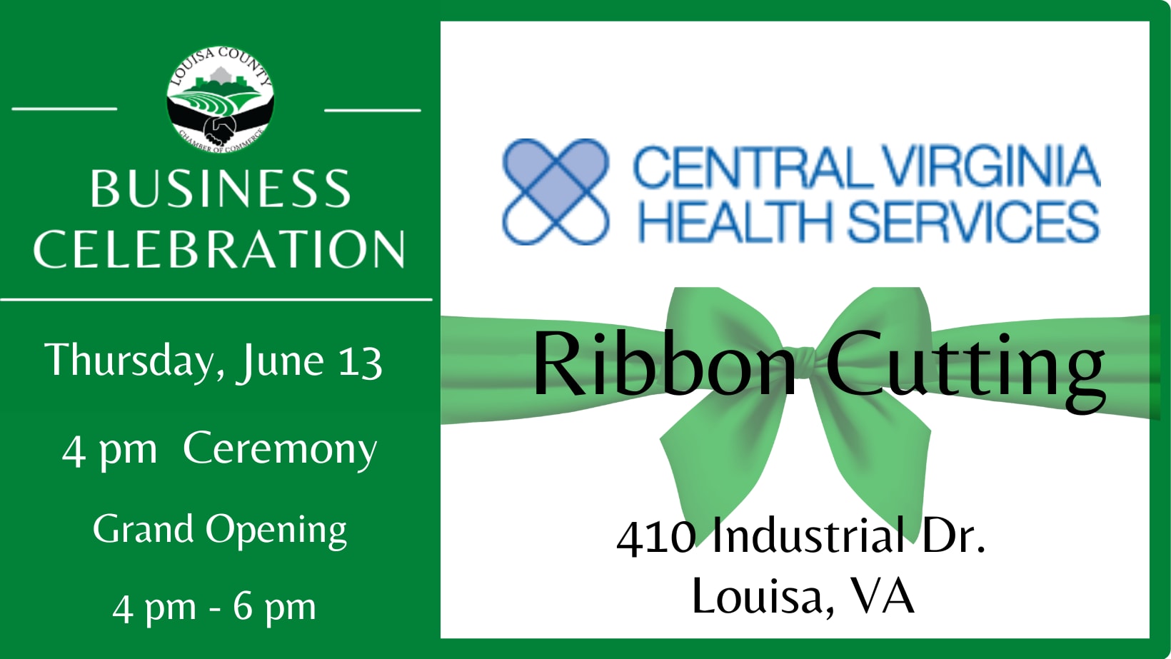 Ribbon Cutting will take place at 4:00 pm sharp.