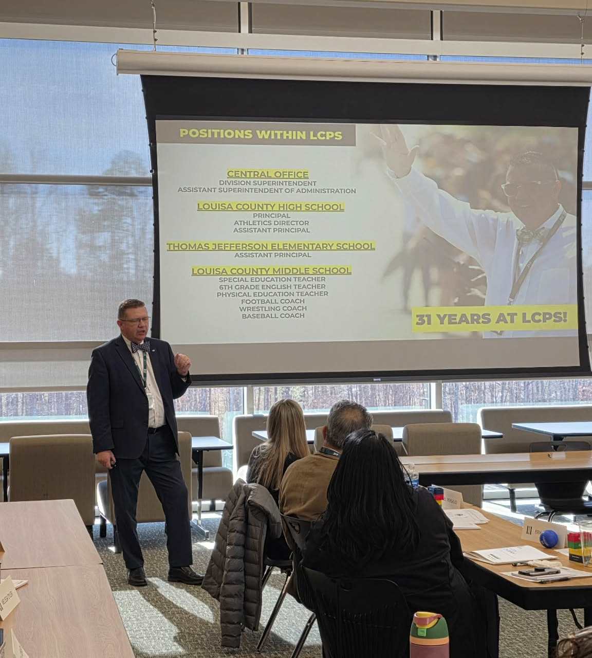 The afternoon continued with a tour of Louisa County Public School facilities, offering participants a broader understanding of the scope, coordination, and operations required to support students countywide. The tour concluded at The Jungle, where classmates experienced the excitement of the space, saw their photos displayed on the jumbotron, and shared a moment that perfectly captured pride, connection, and community spirit.