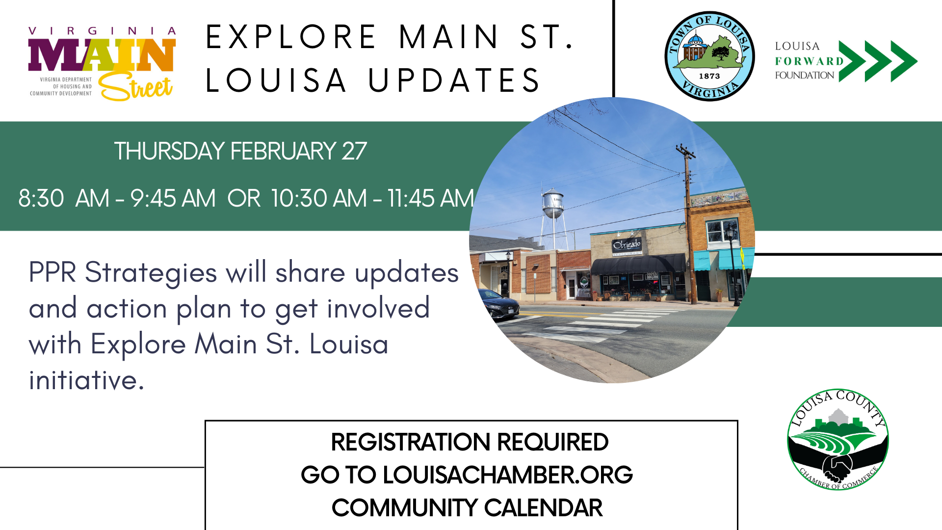 Attention all Town of Louisa businesses, commercial property owners, and organizations! Join us for an insightful session on the progress and vision of the Explore Main Street Louisa initiative. Discover how our collective efforts are shaping the future of our community.