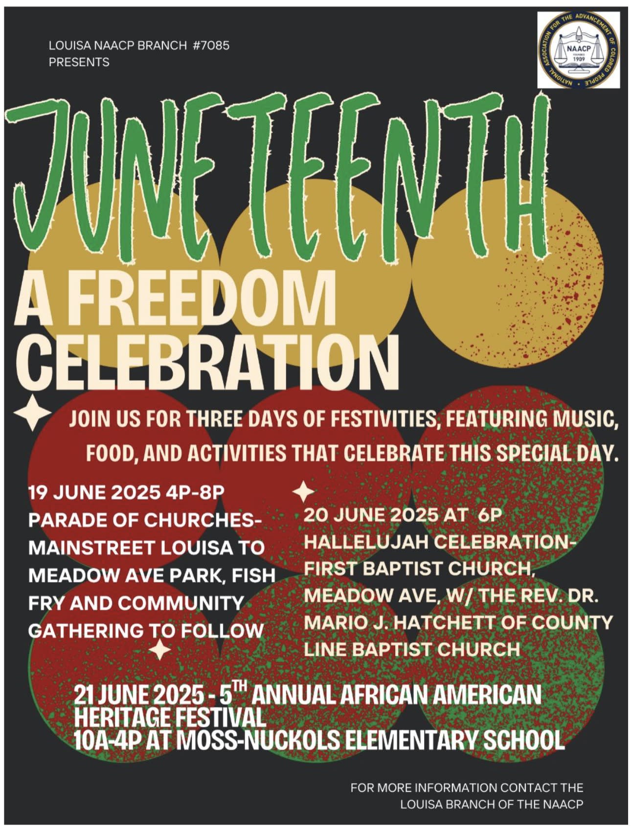 Experience an uplifting evening of praise and worship at First Baptist Church on Meadow Ave. The celebration will feature inspiring words from The Rev. Dr. Mario J. Hatchett of County Line Baptist Church in honor of Juneteenth.