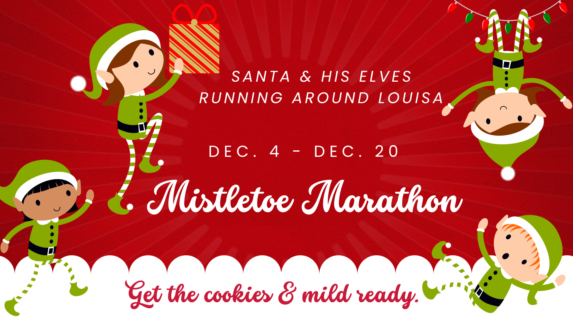 Santa & his elves will be running around Louisa December 4 - 20th, visiting all Chamber member businesses and bringing goodies! We're spreading holiday cheer and promoting your business at the same time!