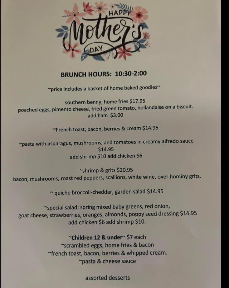 Mother’s Day is coming up - We will be open for brunch 10:30am-2pm on May 14th! Make your reservation today! 540-967-9447