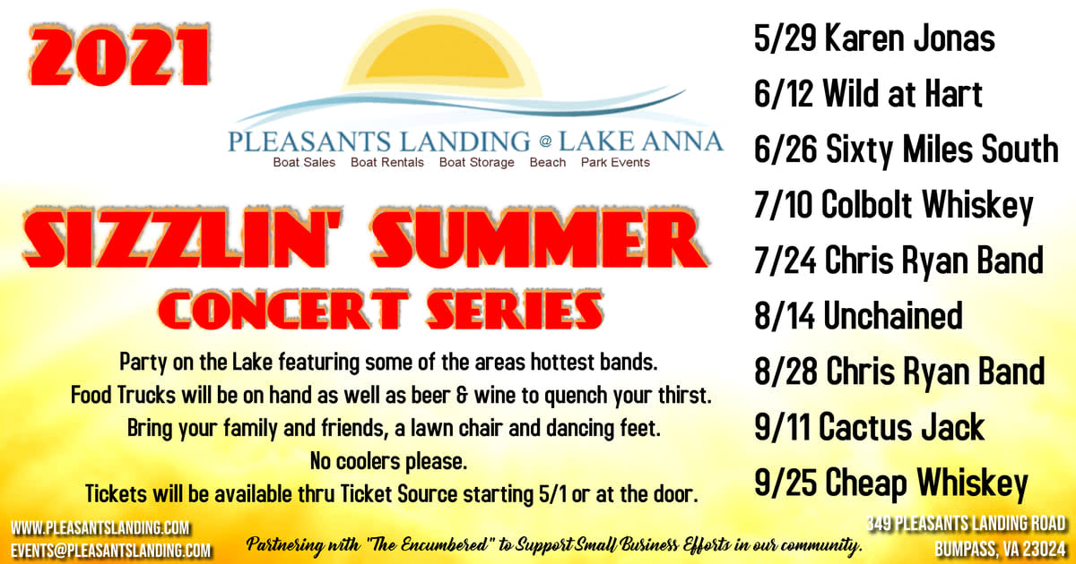 Party on the lake featuring great music, food truck, beer & wine. Bring your family and friends, lawn chairs and dancing feet. No outside coolers, please.