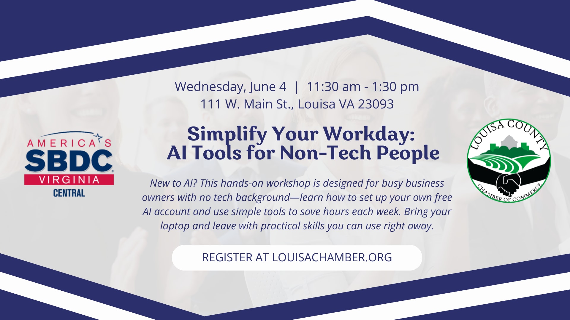 The Central Virginia SBDC has designed a hands-on course that will focus on helping businesspeople who have never used AI learn how to create an account and master the basics of using an AI platform. Within 2 hours, attendees will be able to login to their own AI account and perform a minimum of 10 tasks that can automate business processes and save a minimum of 5 hours per week. While all are encouraged to attend, the exercises will focus on helping entrepreneurs with little or no AI experience learn how to leverage these amazing platforms. Attendees are strongly encouraged to bring a laptop or tablet to the training and the instructors will lead attendees through the process of creating their own personal, free account.