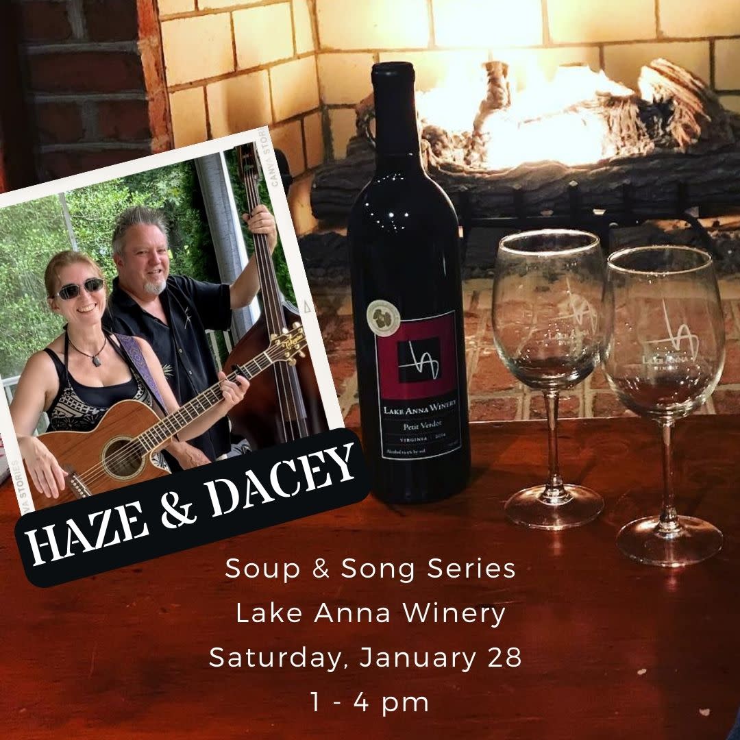Cozy up to the fire and enjoy a glass of wine and a bowl of soup while listening to live music! More info: https://hazyshadeproductions.com/duo