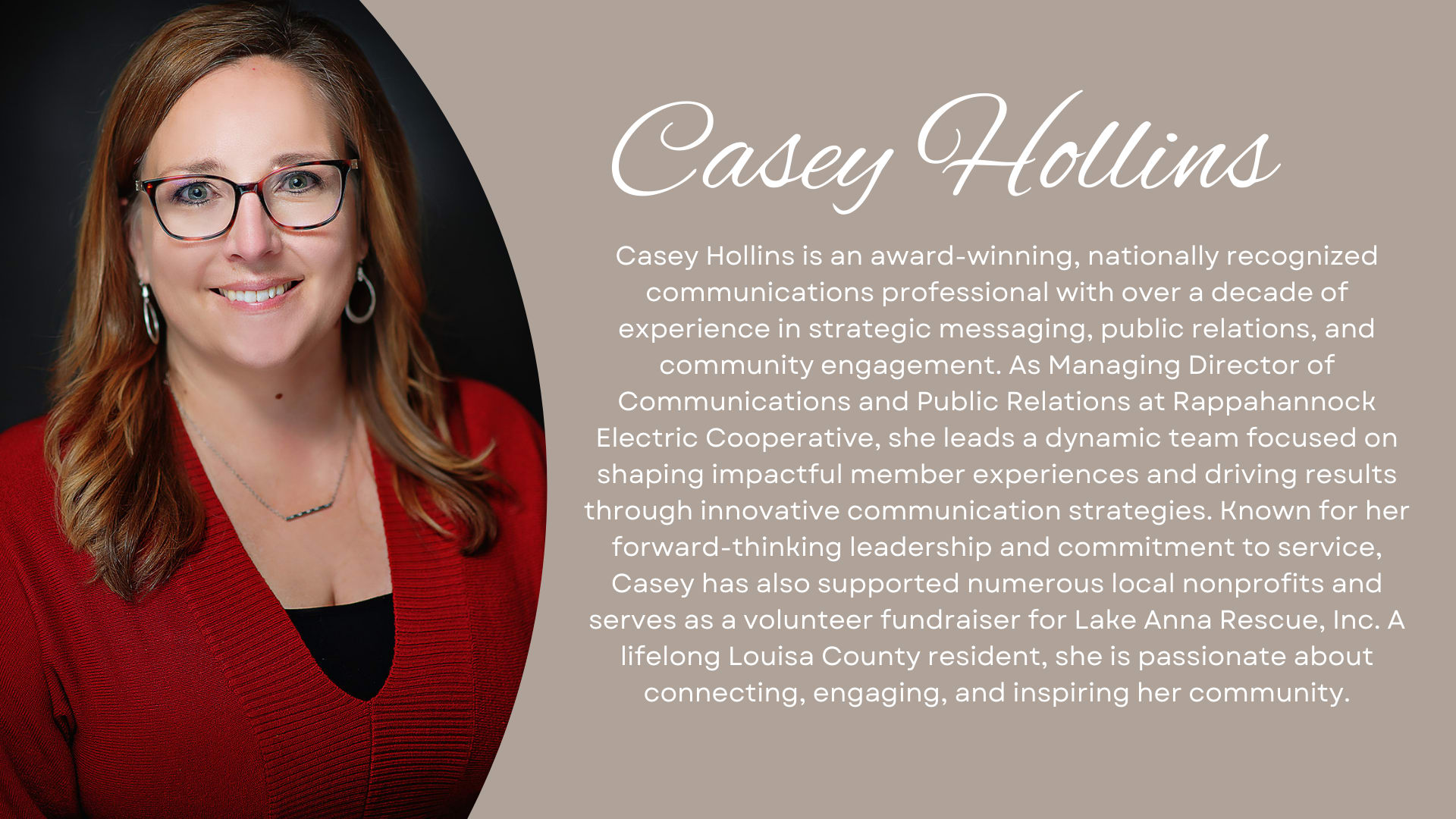 - Casey Hollins – Board Chair (Rappahannock Electric Cooperative)
