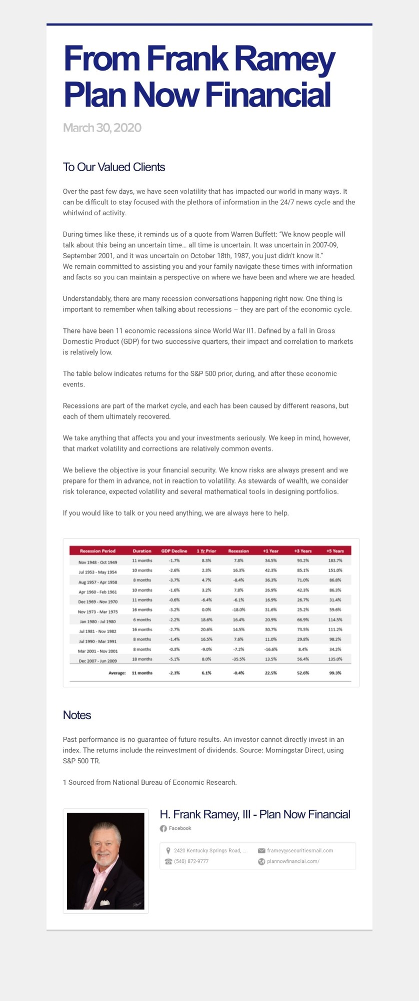 Back to Deals, Specials, Promotions To our valued clients: By Frank Ramey, Cambridge Financial 3/30/2020 Images × Share × Email Facebook LinkedIn X Pinterest Powered By GrowthZone