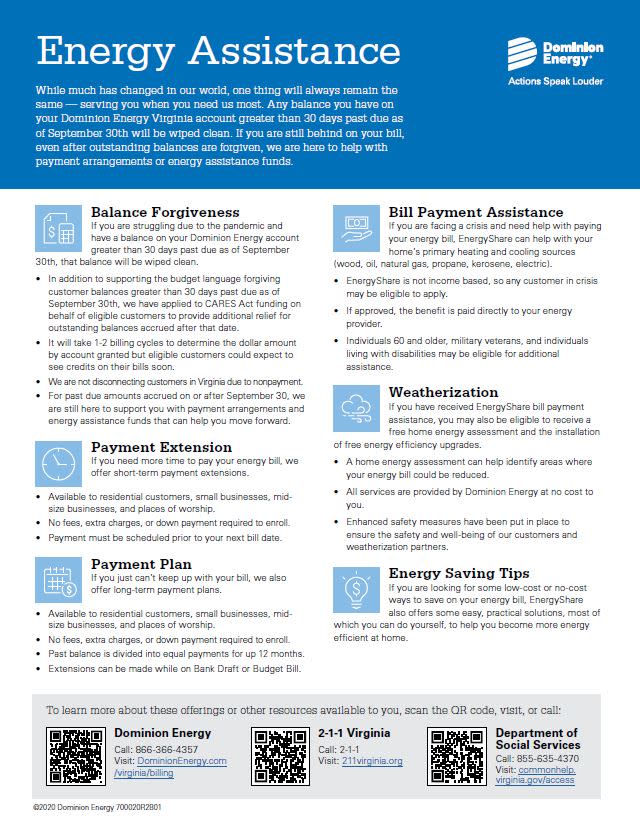Back to What's happening in the Louisa business community. Energy Assistance Program By Dominion Energy 12/4/2020 Images × Share × Email Facebook LinkedIn X Pinterest Powered By GrowthZone