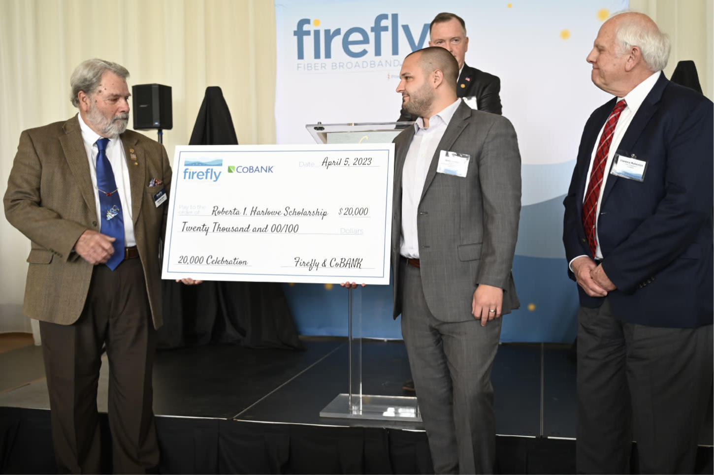 Firefly and CVEC joined with two business partners, CoBank and S&N Communications, to give back to the community as part of the celebration. Firefly donated $10,000 to the Roberta I. Harlowe Scholarship, awarded by VMDAEC Education Scholarship Foundation, which has provided 998 scholarships totaling $900,000. The scholarship, named for the former VMDAEC Scholarship Foundation Chair and current Vice Chair for the Board of Directors at CVEC Roberta Harlowe, will be awarded in the amount of $2,000 to winning students in the CVEC territory. Firefly’s donation will be matched by CoBank’s Sharing Success program, totaling a contribution of $20,000 to local scholarships for high school students.
