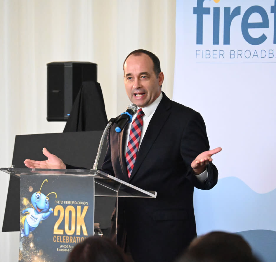 Over 165 guests joined on Wednesday, including Board of Directors, local and state elected officials, contractors, lenders, suppliers, business and residential customers, and business partners who have contributed to the company’s success. Welcoming remarks were offered by Firefly Communications Manager, Melissa Gay, Firefly’s Board Chairman George Goin, and luncheon sponsors Calix and Graybar.