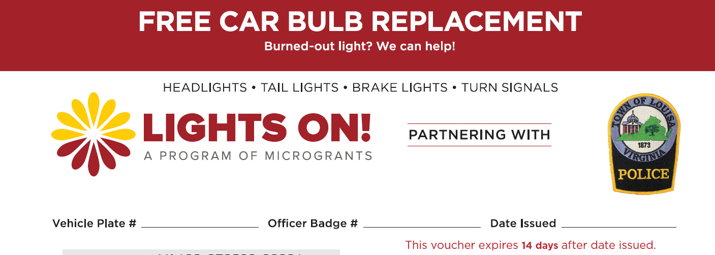 Louisa Police Department serves a diverse community where nearly 20% of its residents live at or below the poverty line. LPD officers often encounter residents who lack the financial ability to properly maintain their vehicles with fully functional headlights and taillights.